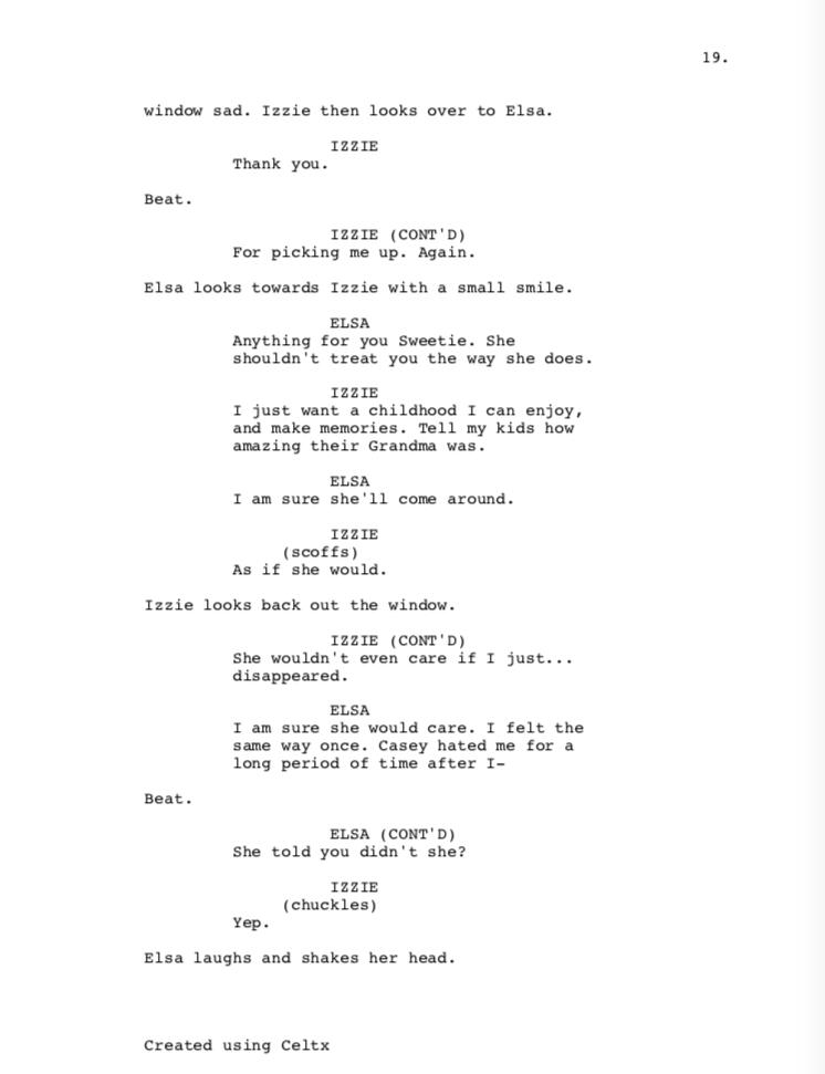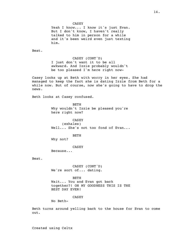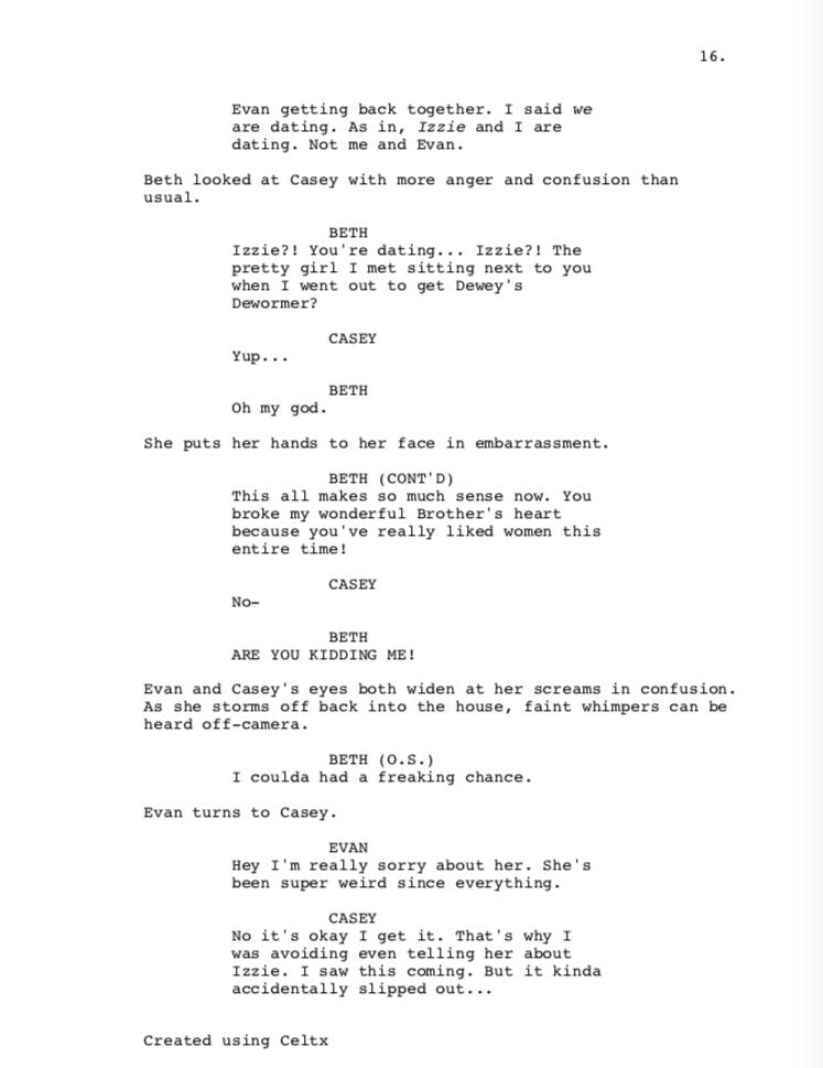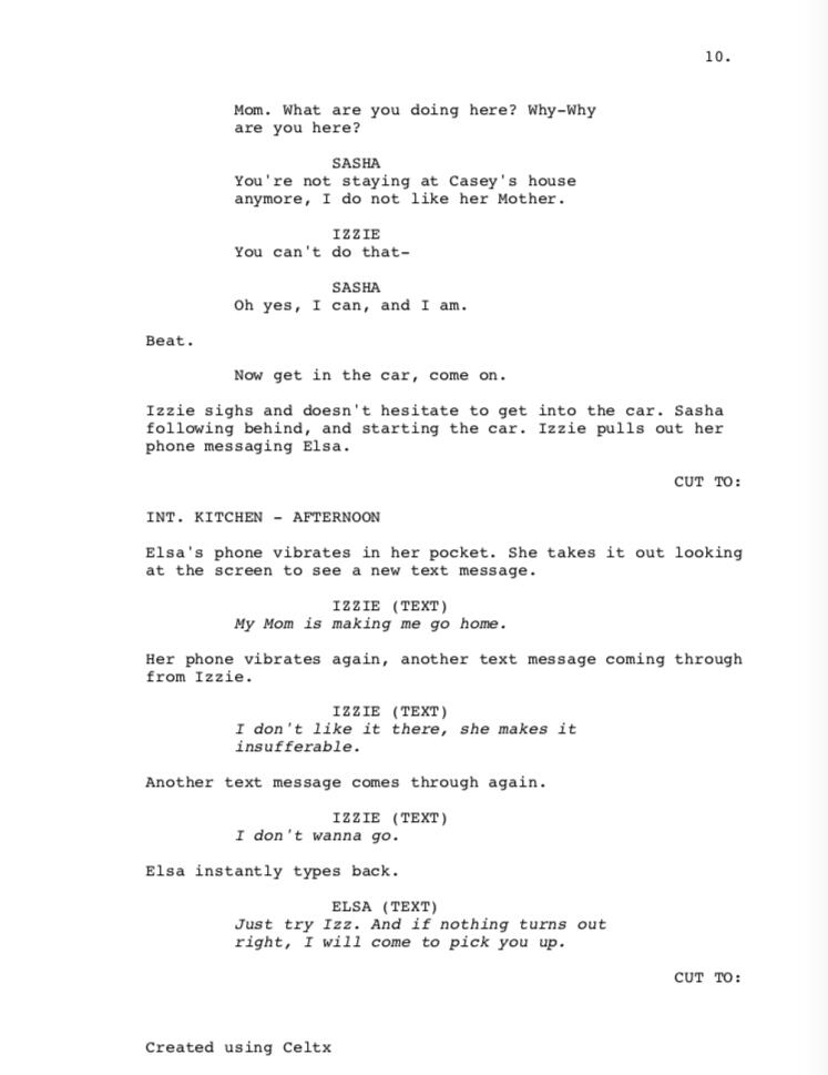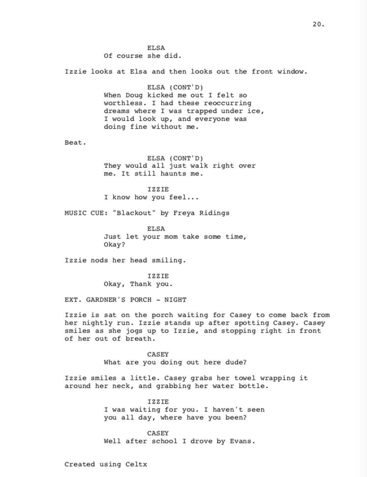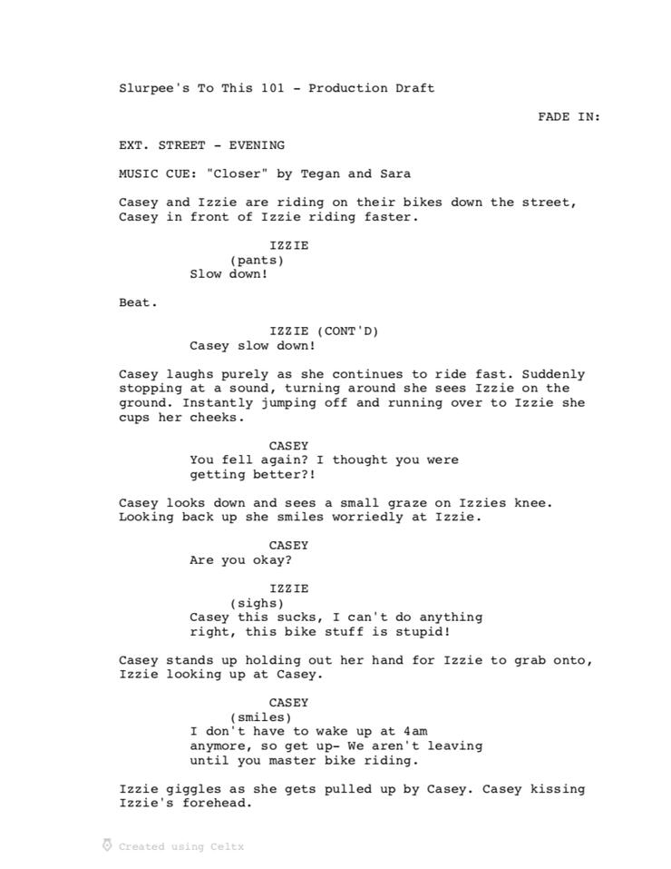 Welcome to 'Slurpee's to this'. The non-official, official, Atypical Spin-off script, written and created by Kira-Lee Hendren and Maya Matlick. Because we believe Atypical characters, Casey and Izzie, were left on such an open note, we thought we would go ahead and create our own off-brand Cazzie-centric season 5!NO FURTHER EPISODES WILL BE RELEASED